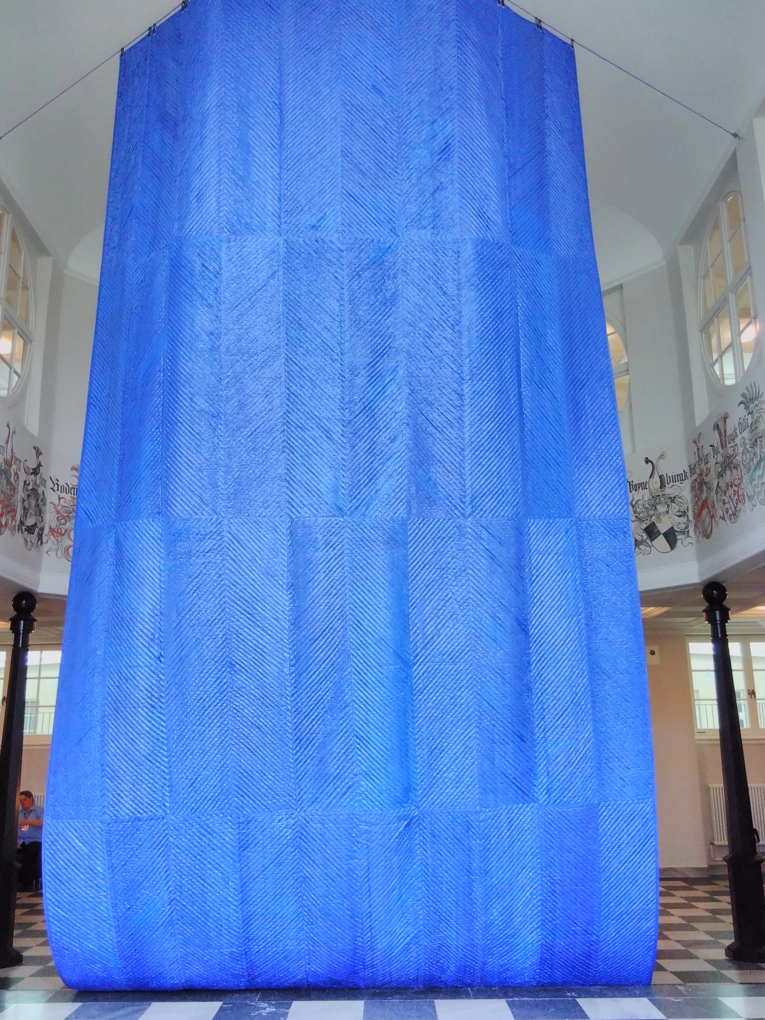 Le bleu de l'oeuvre du Mata Aho collective faite avec du matériau de bâche type sac Ikea, documenta de Kassel 2017